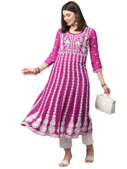 Anni Designer Women'S Georgette Chikankari Embroidered Anarkali Kurti (Naav Pink-Nw2_L_Dark Pink_Large),Pink,L,Georgette,Anarkali,Kurti