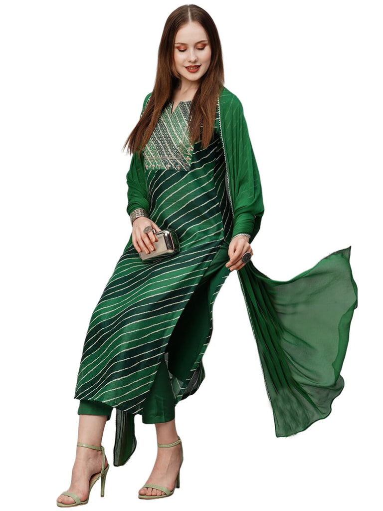 Anni Designer Women'S Georgette Printed Straight Embroidered Kurta With Pant & Dupatta (Rupkla Mehandi-Nw_L_Green_Large),Green,L,Georgette,Regular,Dupatta