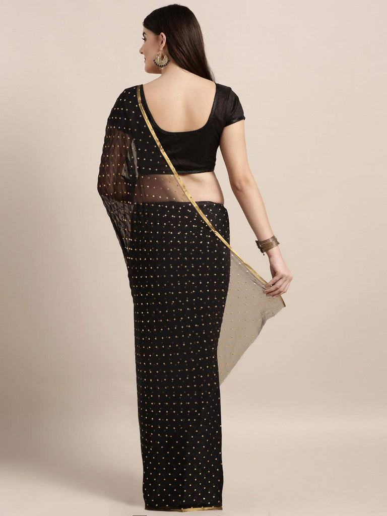 The ANNI DESIGNER saree is made from pure georgette, which is known for its lightweight and flowy characteristics.