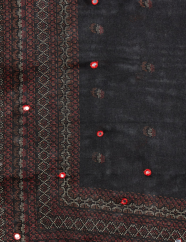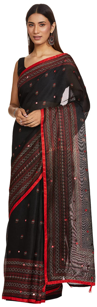 Anni Designer Womens Jute Silk Printed Mirror Embroidery Black Saree With Blouse,Black,Free Size,Silk,ready to wear,With Blouse Piece