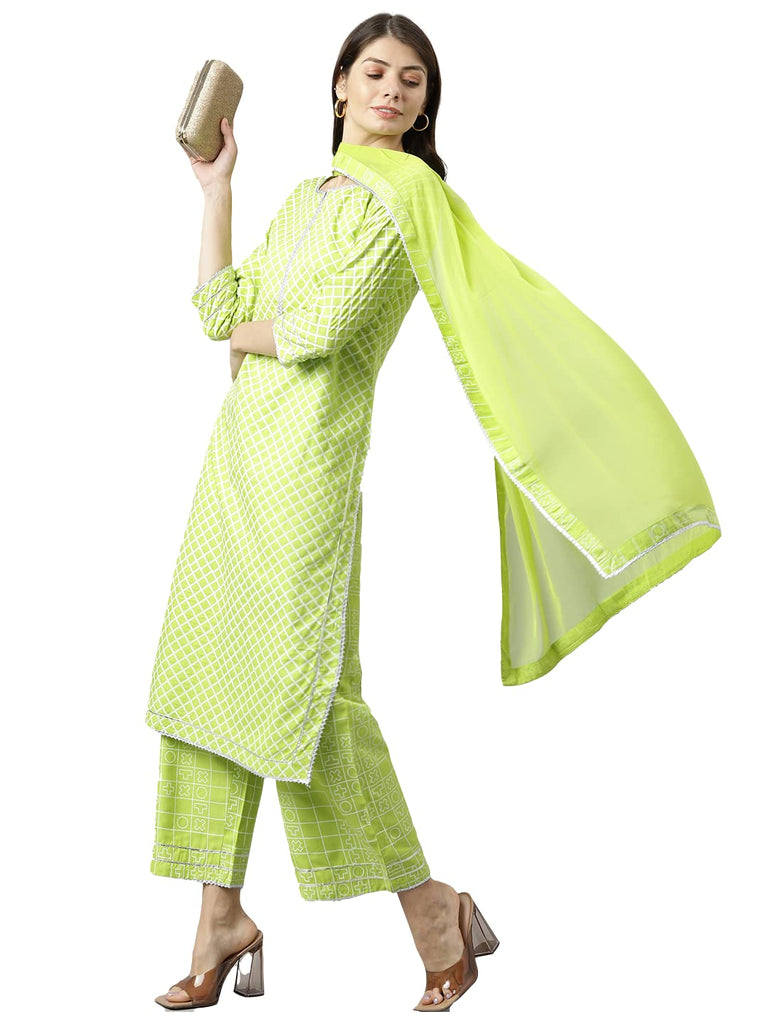 Descriptionanni Designer Women'S Polycotton Kurta With Palazzo & Dupatta (Kairav_New01_Green_Small)