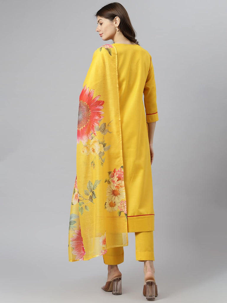Anni Designer Women'S Polycotton Straight Kurta With Pant & Dupatta (Nilesh Yellow_S_New01_Yellow_Small)