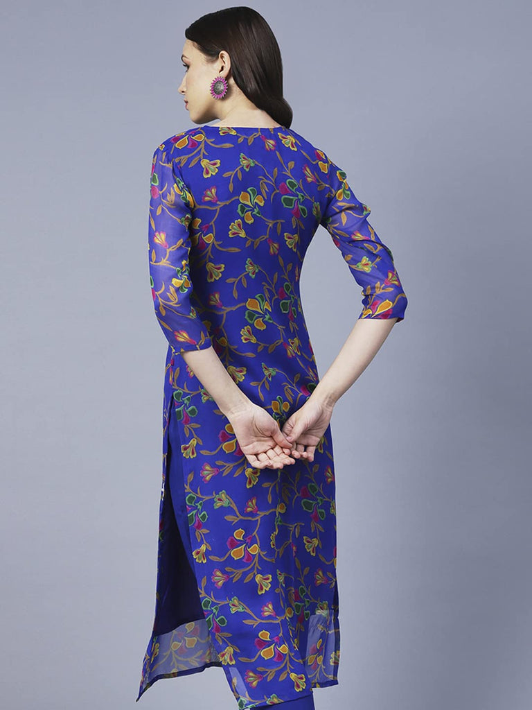 Anni Designer Women'S Printed Georgette Chikankari Embroidered Kurti (Gori-Blue_S_Blue_Small),Blue,S,Georgette,Regular,One Kurta