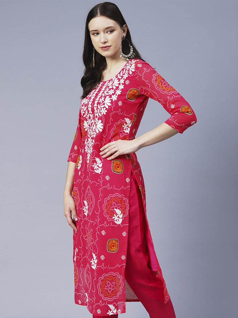 Anni Designer Women'S Printed Georgette Chikankari Embroidered Kurti (Gori-Pink_S_Pink_Small),Pink,S,Georgette,Regular,Kurti, kurta