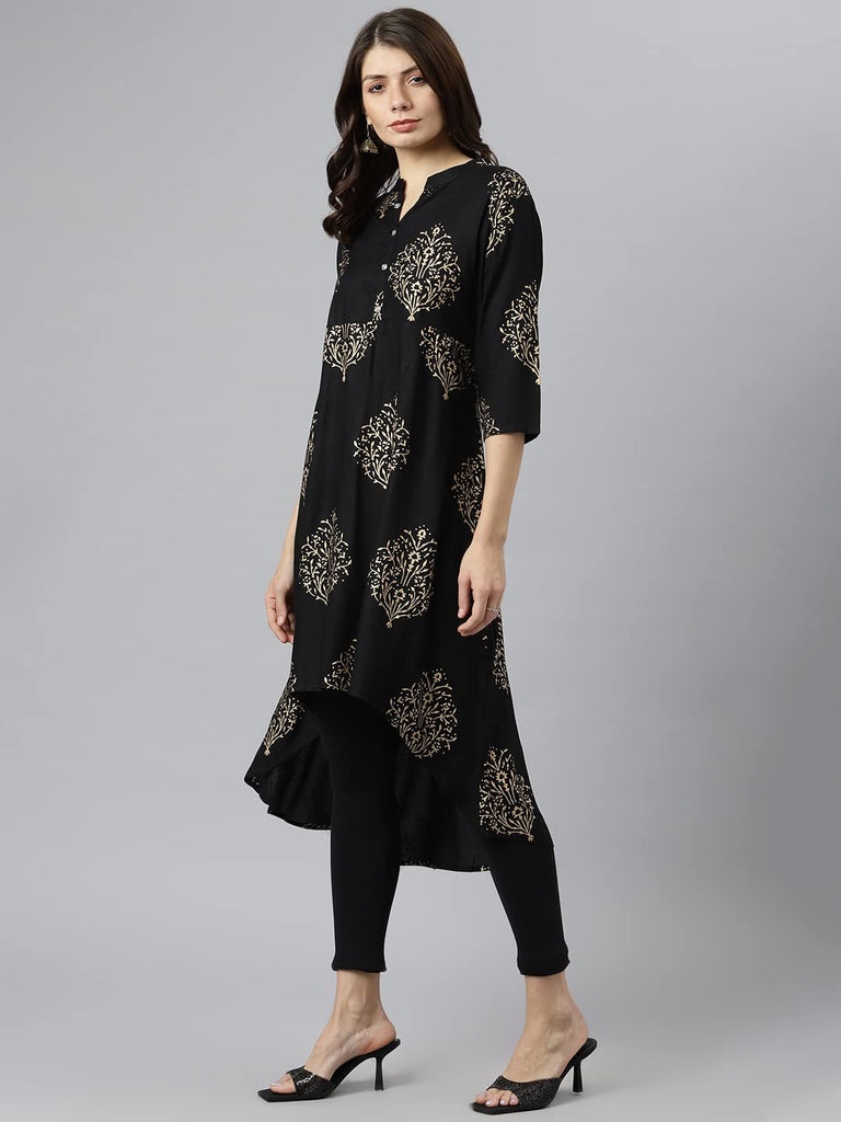 Descriptionanni Designer Women Rayon A-Line Printed Kurta (Zayoki Black_S_Black_Small)