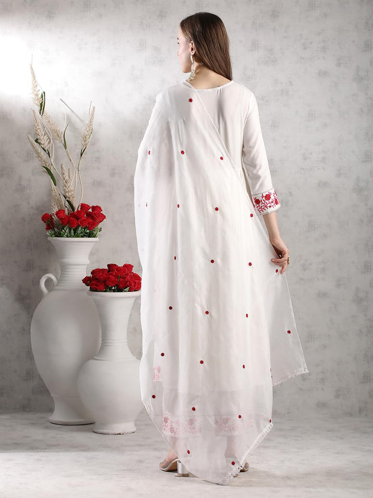 Anni Designer Women'S Rayon Blend Anarkali Embroidered Kurta With Pant & Dupatta (Raashi Cream-Vks02_Xl_Cream_X-Large)