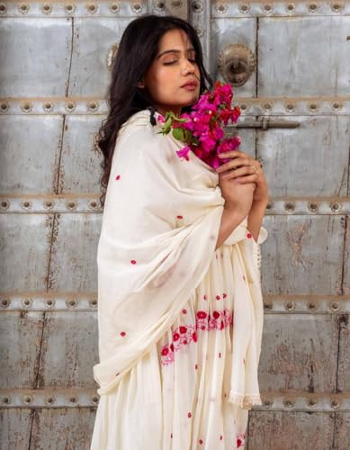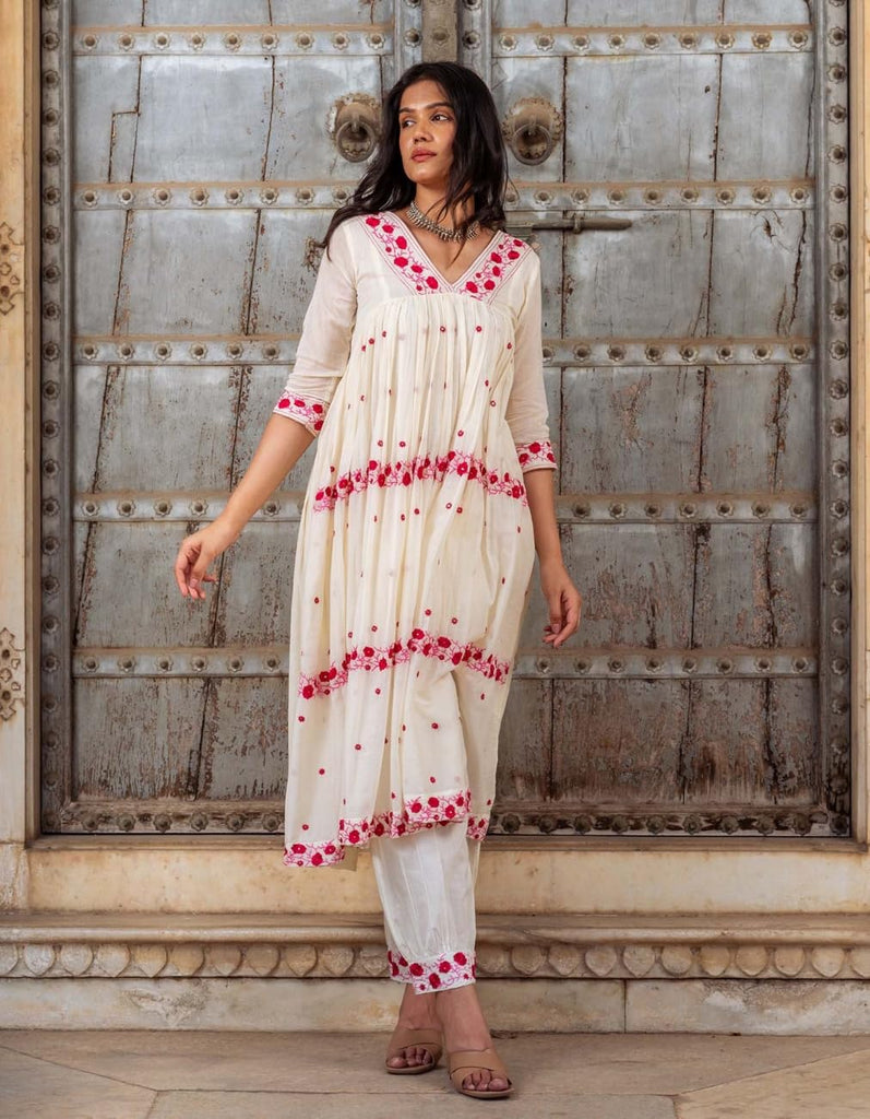 Anni Designer Women'S Rayon Blend Anarkali Embroidered Kurta With Pant & Dupatta (Raashi Cream_M_Cream_Medium)
