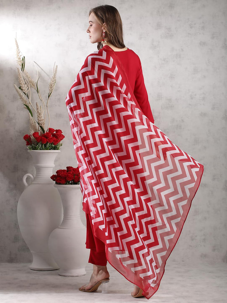 Anni Designer Women'S Rayon Blend Anarkali Embroidered Kurta With Pant & Dupatta (Varalaxmi Red-Vks02_Xl_Red_X-Large),Red,XL,,,
