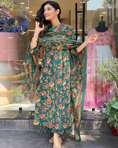 Anni Designer Women'S Rayon Blend Anarkali Printed Kurta With Palazzo & Dupatta (Cia Green-Vks01_5Xl_Green_Xxxxx-Large),Green,5XL,Rayon Blend,Anarkali,