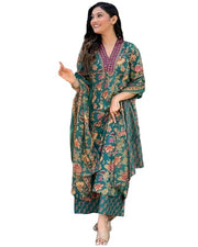 Anni Designer Women'S Rayon Blend Anarkali Printed Kurta With Palazzo & Dupatta (Cia Green-Vks01_Xl_Green_X-Large)
