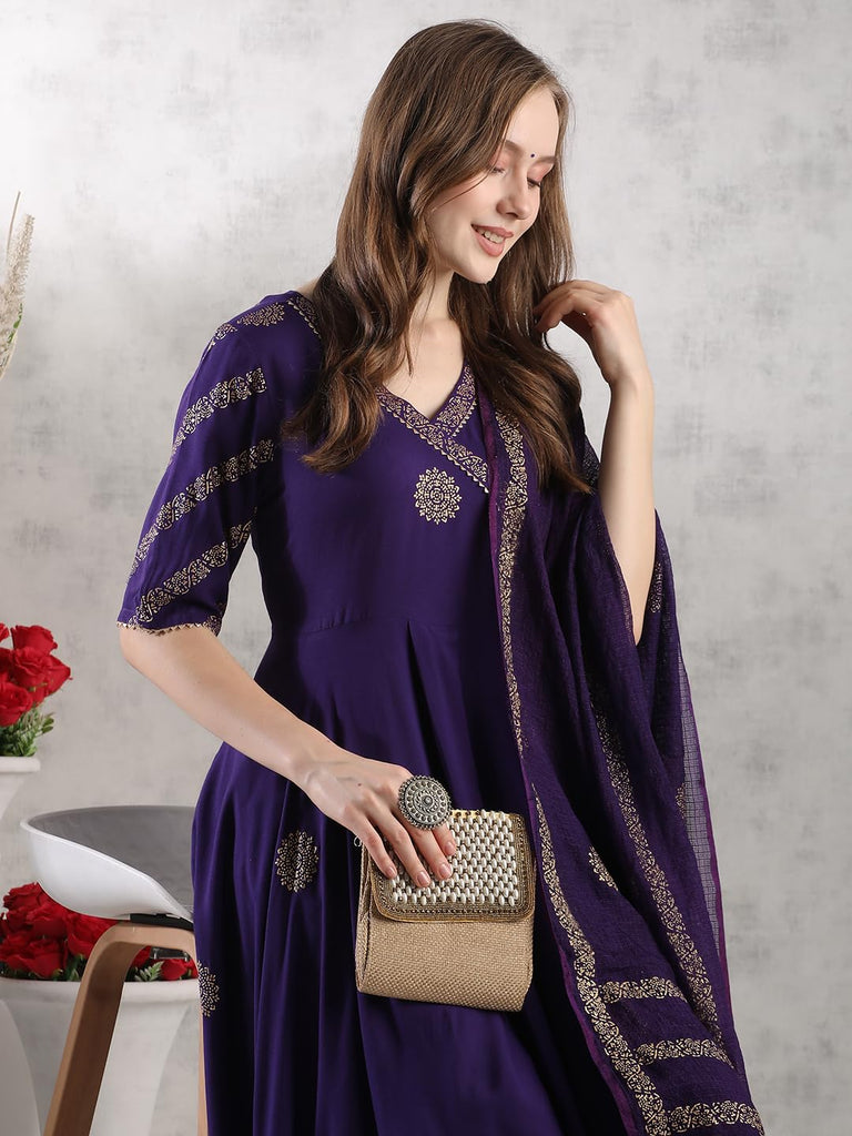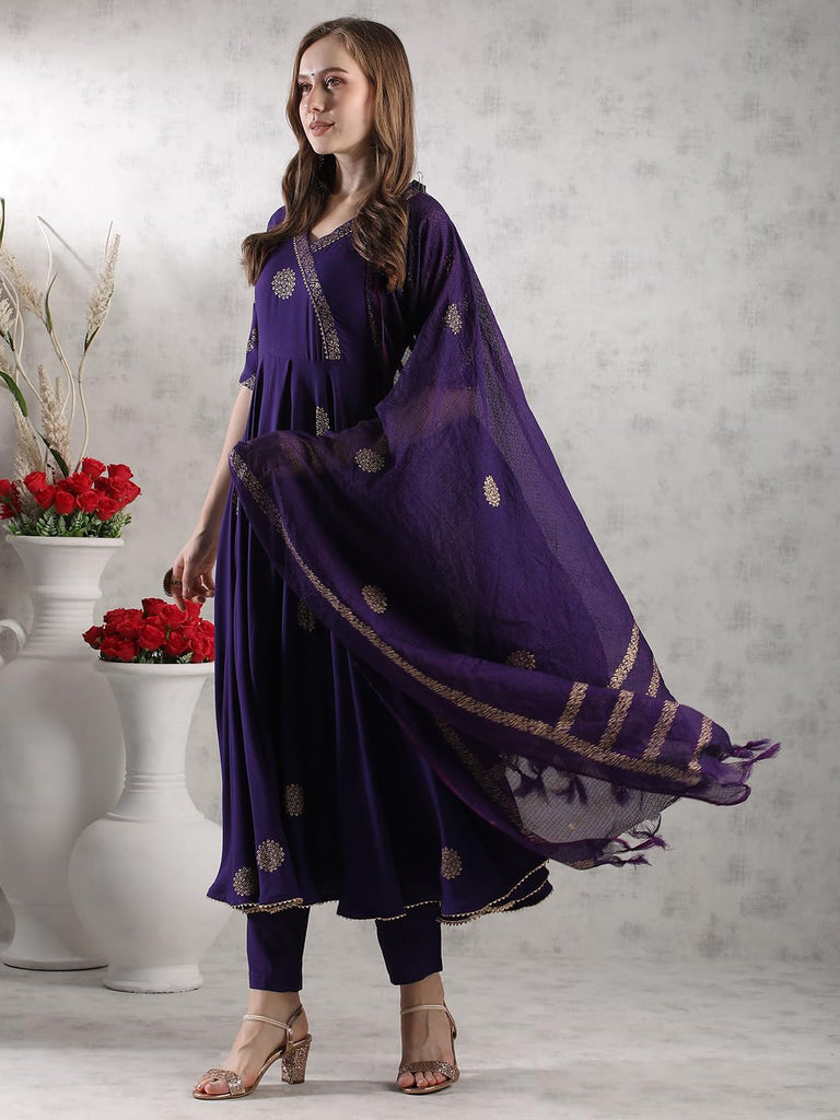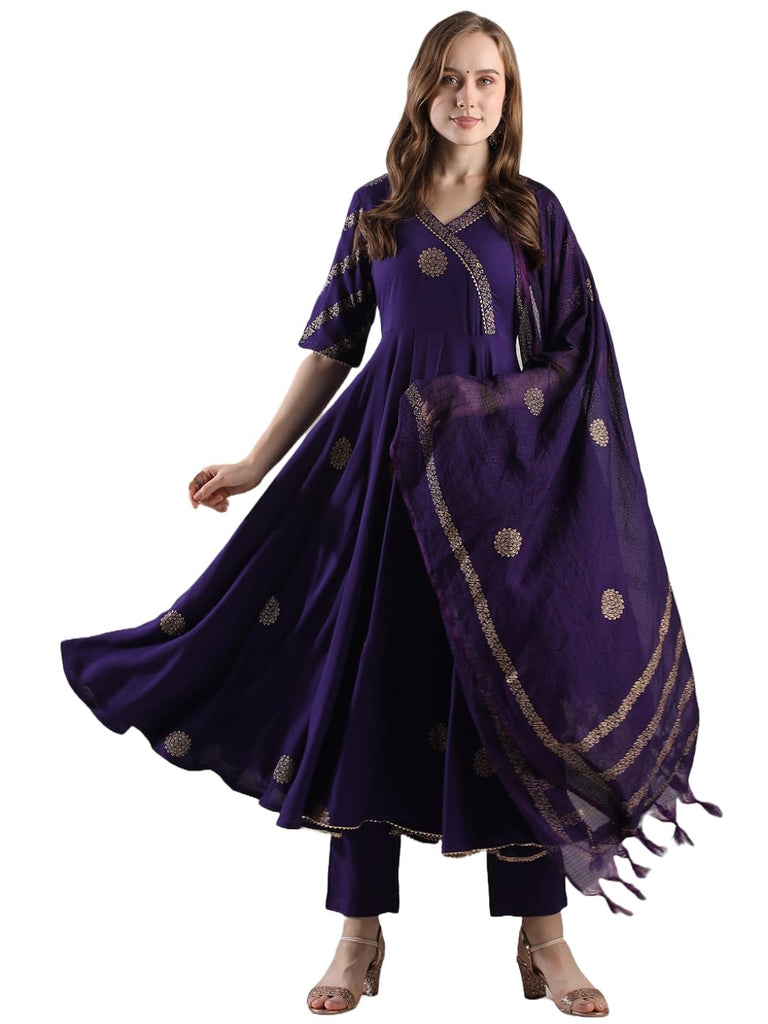 Anni Designer Women'S Rayon Blend Anarkali Printed Kurta With Pant & Dupatta (Berlin Begani-Vks04_4Xl_Begani_Xxxx-Large)