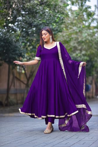 Anni Designer Women'S Rayon Blend Anarkali Solid Kurta With Pant & Dupatta (Shyam Begani-Vks01_S_Begani_Small),Begani,S,Rayon Blend,Anarkali,