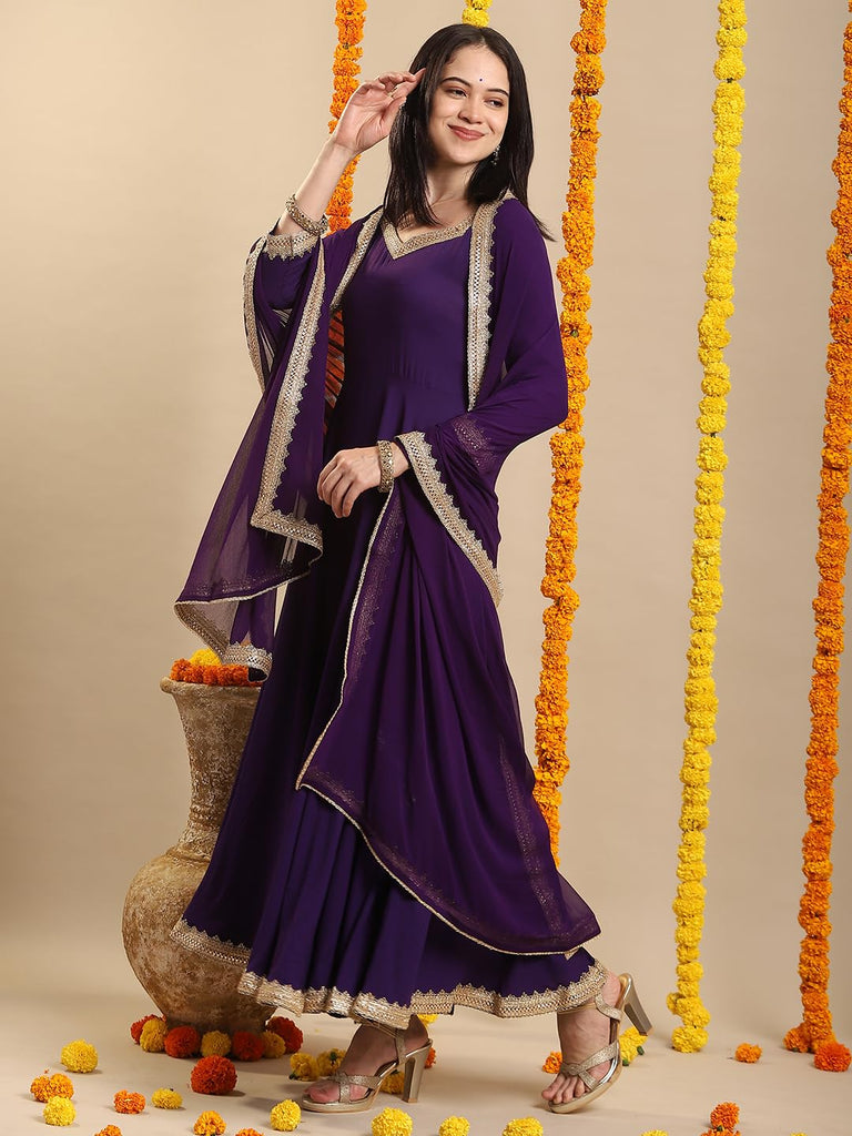 Anni Designer Women'S Rayon Blend Anarkali Solid Kurta With Pant & Dupatta (Shyam Begani-Vks03_L_Begani_Large),Begani,L,Rayon Blend,Anarkali,