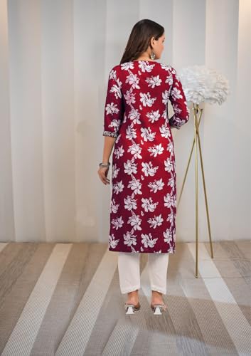 Anni Designer Women'S Rayon Blend Chikankari Embroidered Straight Kurta (Sceros Pink_Xl_Pink_X-Large),Pink,XL,Rayon Blend,Regular,Kurta
