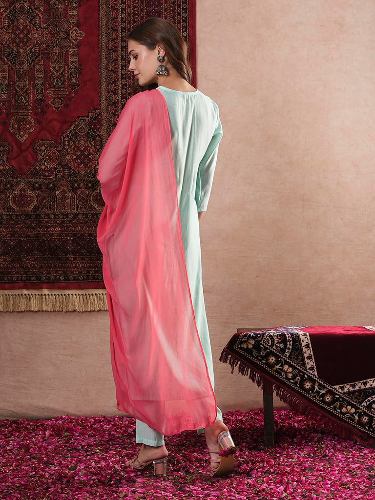 Anni Designer Women'S Rayon Blend Embroidered Straight Kurta With Pant & Dupatta (Baad Green-Vks07_S_Green_Small)