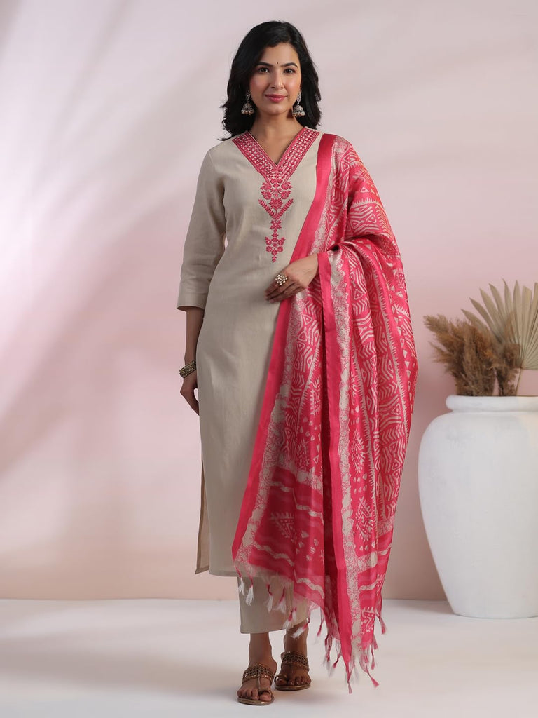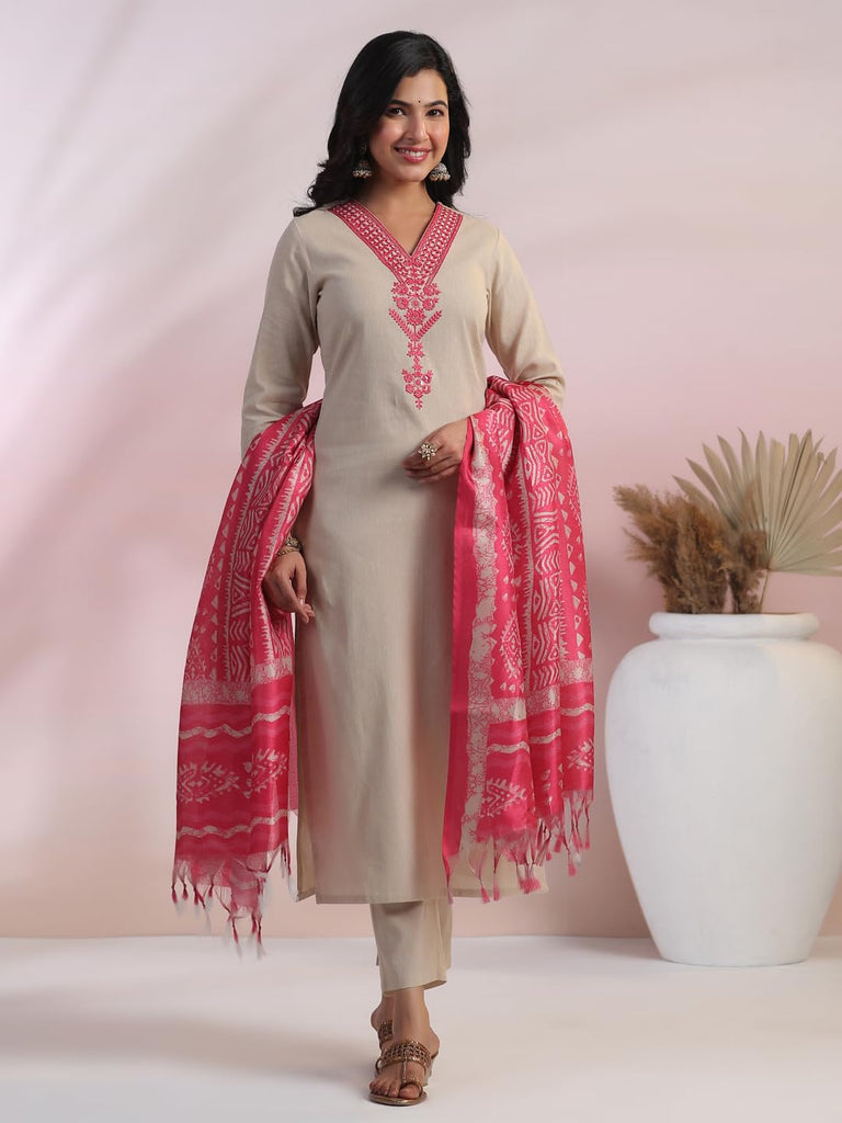 Anni Designer Women'S Rayon Blend Embroidered Straight Kurta With Pant & Dupatta (Jankari Pink-Nsw_Xxl_Pink_Xx-Large)