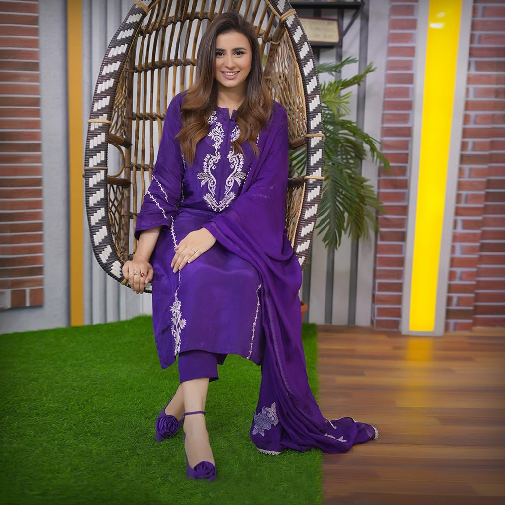 Anni Designer Women'S Rayon Blend Embroidered Straight Kurta With Pant & Dupatta (Jayashuda Begani_Xl_Begani_X-Large),Begani,XL,Rayon Blend,Regular,