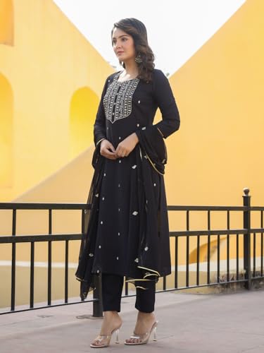 This specific kurta set is available in black, but variations in color may occur due to different screen resolutions.