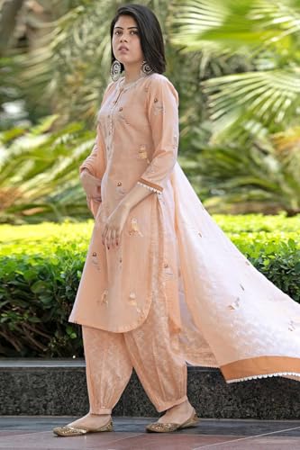 Anni Designer Women'S Rayon Blend Hand Block Printed Straight Kurta With Pant & Dupatta (Ragsri Peach-Vks02_M_Peach_Medium),Peach,M,,,