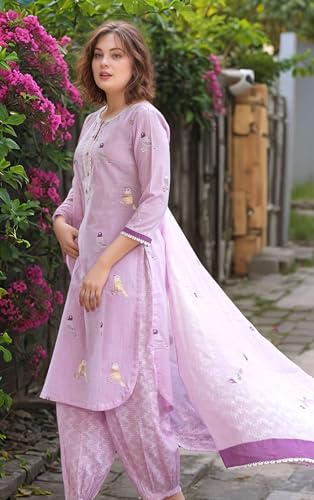 Anni Designer Women'S Rayon Blend Hand Block Printed Straight Kurta With Pant & Dupatta (Ragsri-Purple-Nw_S_Purple_Small),Purple,S,Rayon Blend,Classic,Kurta, Scarf