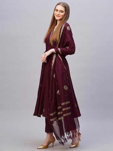 Anni Designer Women'S Rayon Blend Printed Anarkali Kurta With Pant & Dupatta (Berlin Wine-Nb_Xxl_Wine_Xx-Large),Wine,2XL,Rayon Blend,Anarkali,Kurta, Scarf