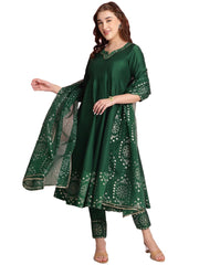 Anni Designer Women'S Rayon Blend Printed Anarkali Kurta With Pant & Dupatta (Varuna Green_S_Green_Small),GREEN,S,Rayon Blend,Anarkali,