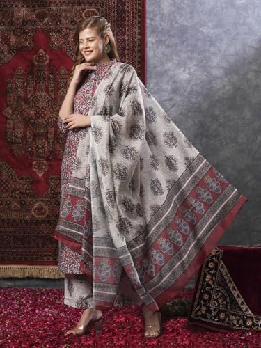 Anni Designer Women'S Rayon Blend Printed Straight Kurta Plazzo With Printed Dupatta (Aabina Maroon-Vks01_Xxl_Maroon_Xx-Large),Maroon,2XL,Rayon Blend,Regular,