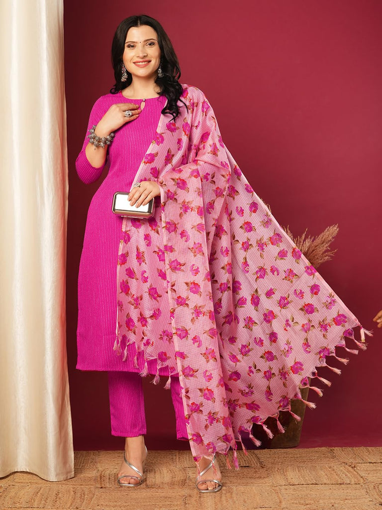Anni Designer Women'S Rayon Blend Printed Straight Kurta With Pant & Dupatta (Barhai Pink-Vks01_L_Pink_Large)