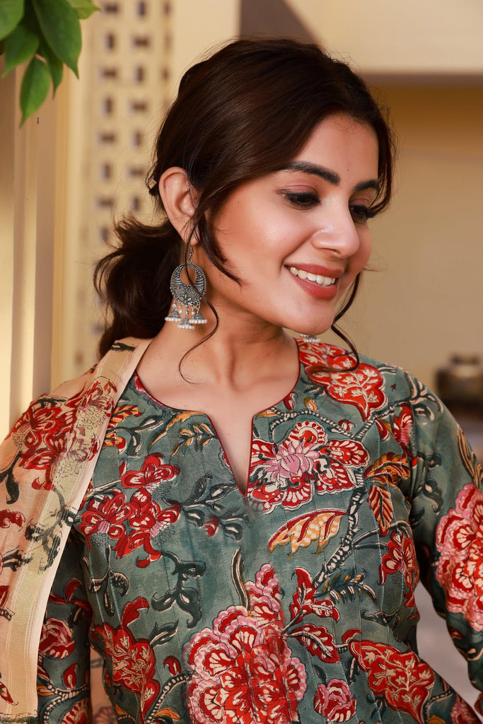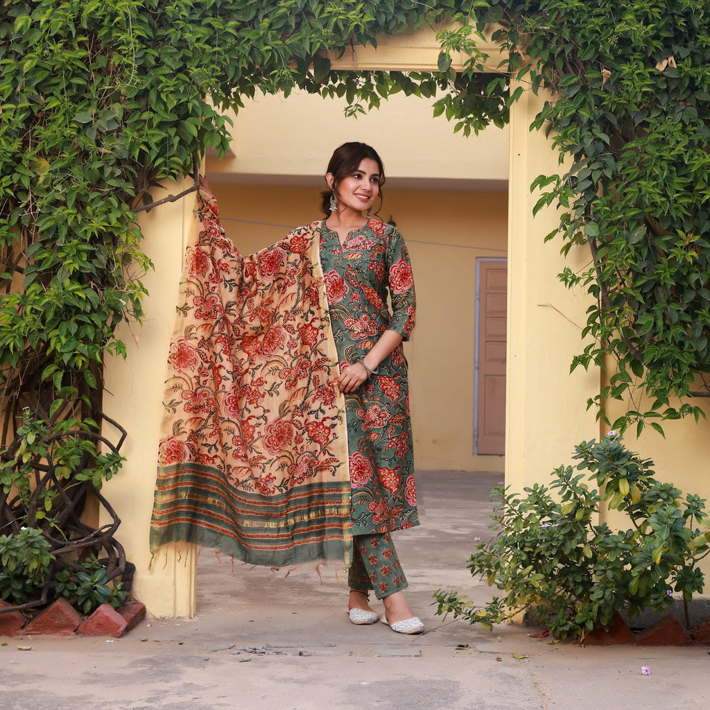 Anni Designer Women'S Rayon Blend Printed Straight Kurta With Pant & Dupatta (Fta Green-Nrk_L_Green_Large),Green,L,,,
