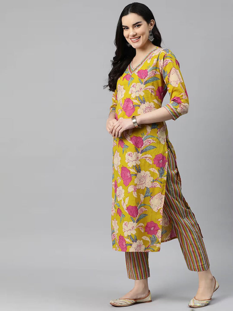 Anni Designer Women'S Rayon Blend Printed Straight Kurta With Pant & Dupatta (Ganita Mustrad-Vks04_M_Mustard_Medium)