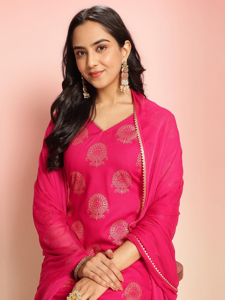 Anni Designer Women'S Rayon Blend Printed Straight Kurta With Pant & Dupatta (Jubal Pink_M_Pink_Medium)