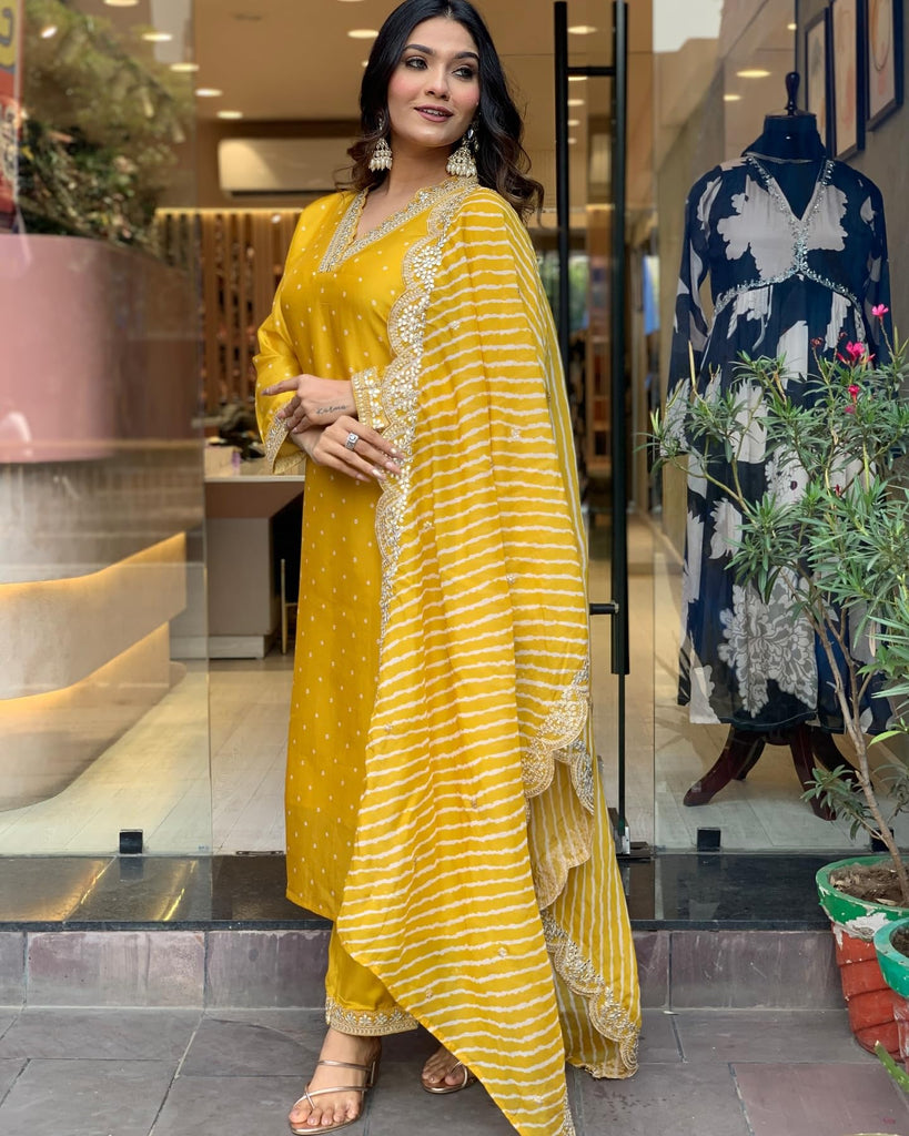 Anni Designer Women'S Rayon Blend Printed Straight Kurta With Pant & Dupatta (June Yellow_S_Yellow_Small)