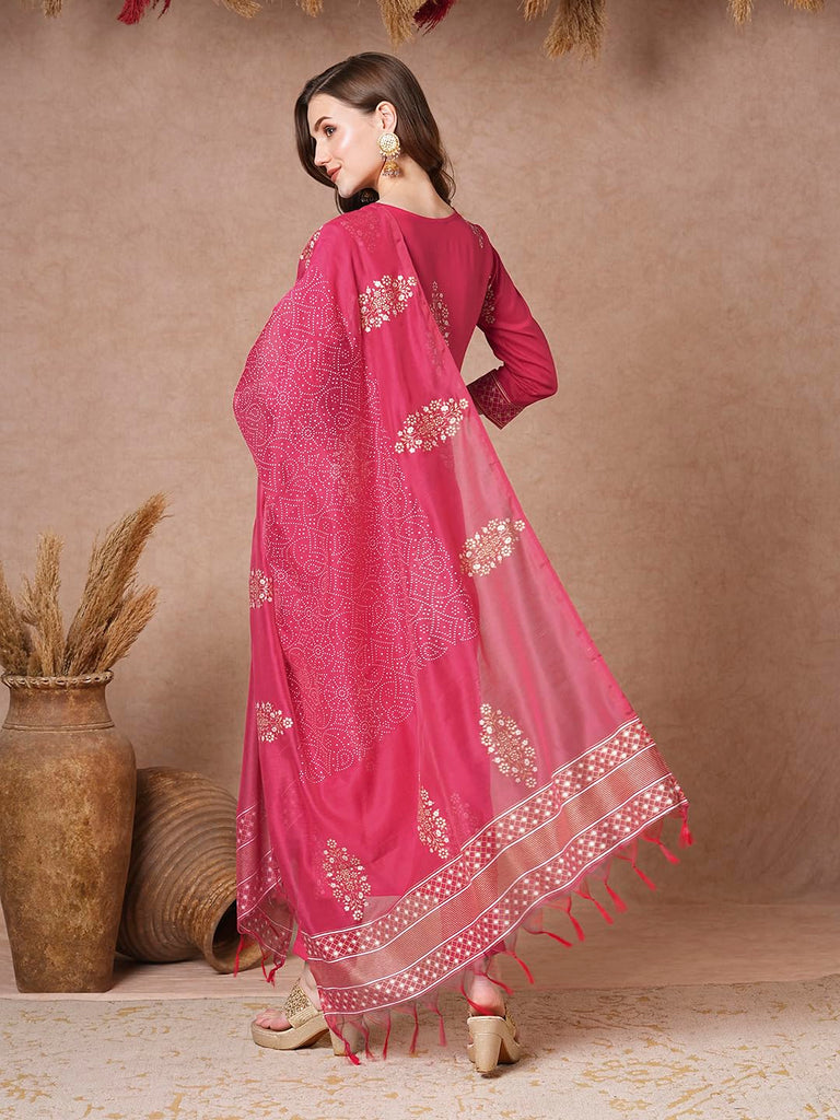 Anni Designer Women'S Rayon Blend Printed Straight Kurta With Pant & Dupatta (Mangai Pink-Vks02_5Xl_Pink_Xxxxx-Large),PINK,5XL,Rayon Blend,Regular,