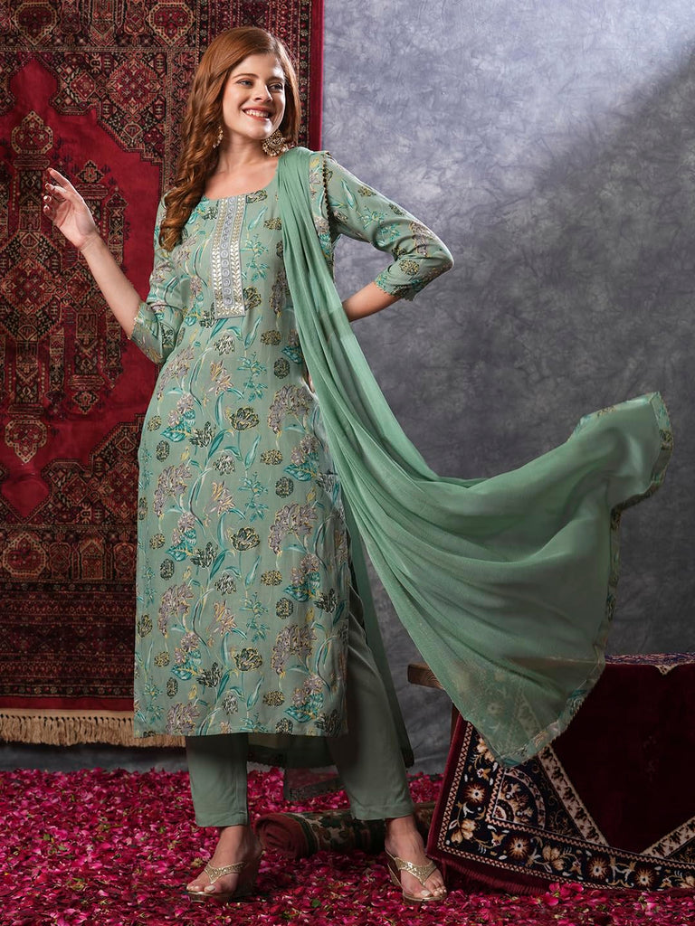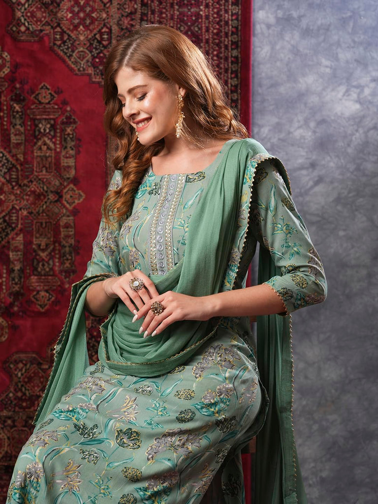 Anni Designer Women'S Rayon Blend Printed Straight Kurta With Pant & Dupatta (Vice Green-Vks02_3Xl_Green_Xxx-Large)