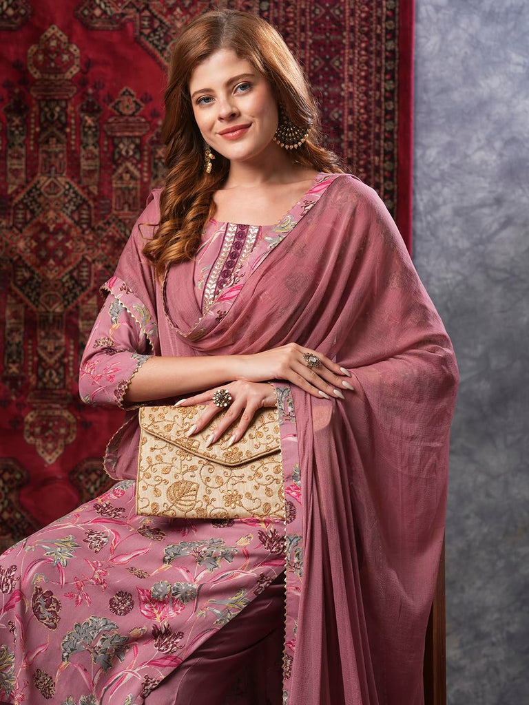 Anni Designer Women'S Rayon Blend Printed Straight Kurta With Pant & Dupatta (Vice Peach-Vks02_L_Peach_Large),Peach,L,,,