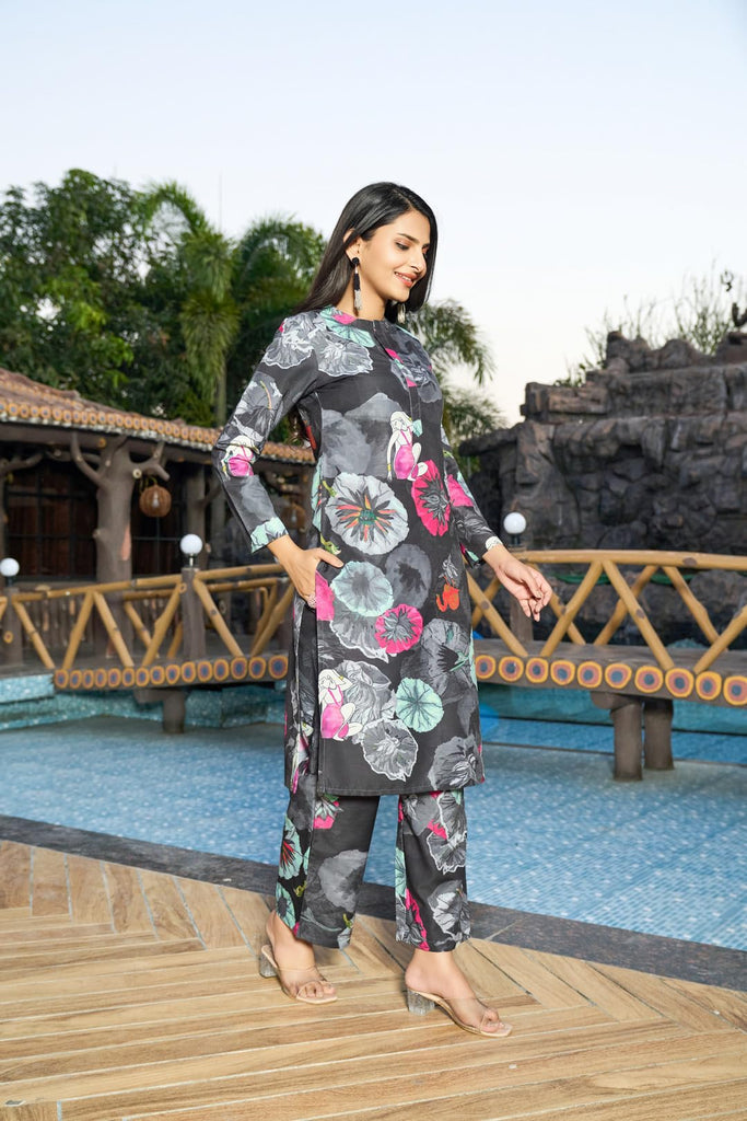 The ANNI DESIGNER Women's Coordinated Set is made from a cotton blend, providing a comfortable and breathable fit.