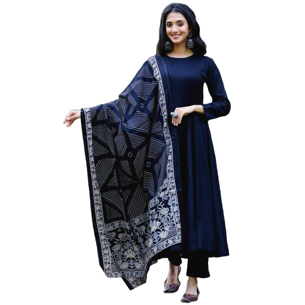 Anni Designer Women'S Rayon Blend Solid Anarkali Kurta With Pant & Dupatta (Friday Blue_Xl_Blue_X-Large),Blue,XL,Rayon Blend,Anarkali,