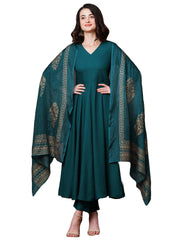 Anni Designer Women'S Rayon Blend Solid Anarkali Kurta With Pant & Dupatta (Magic-Kerosin-Ndm_3Xl_Dark Blue_Xxx-Large),Dark Blue,3XL,Rayon Blend,Anarkali,Kurta, Scarf
