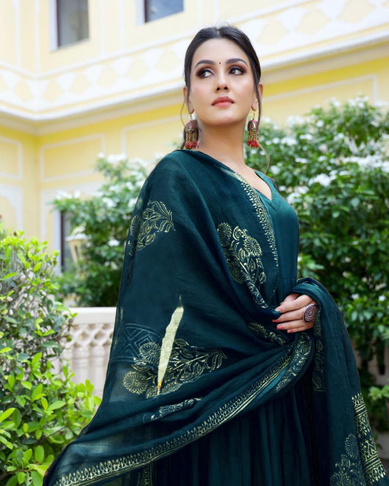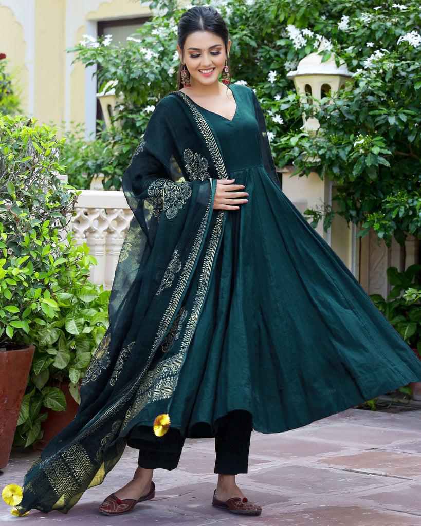 Anni Designer Women'S Rayon Blend Solid Anarkali Kurta With Pant & Dupatta (Magic-Kerosin-Nw_S_Dark Blue_Small)