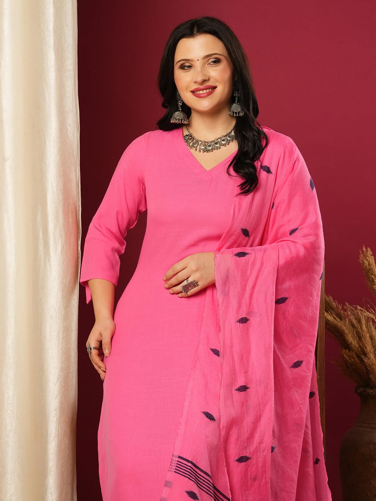 Anni Designer Women'S Rayon Blend Solid Straight Kurta With Pant & Dupatta (Janeu Pink-Vks01_Xl_Pink_X-Large),Pink,XL,,,