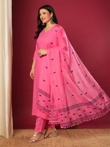 Anni Designer Women'S Rayon Blend Solid Straight Kurta With Pant & Dupatta (Janeu Pink-Vks01_Xxl_Pink_Xx-Large),Pink,2XL,Rayon Viscose,Regular,