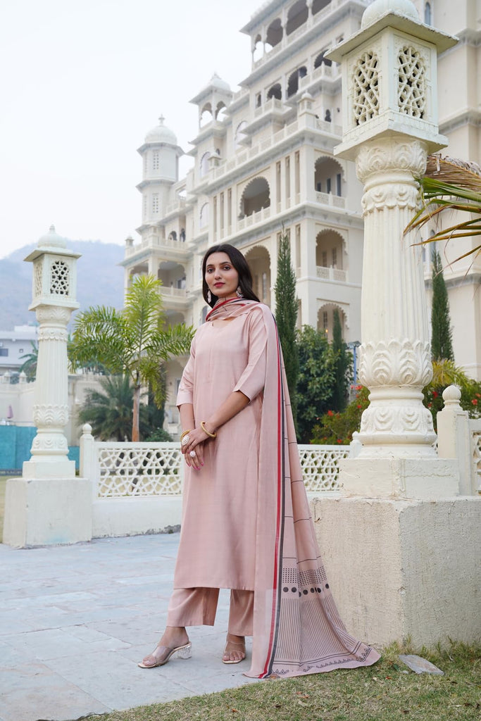 Anni Designer Women'S Rayon Blend Solid Straight Kurta With Pant & Dupatta (Raja Saab Beige-Vks06_S_Beige_Small),Beige,S,Rayon Blend,Classic,