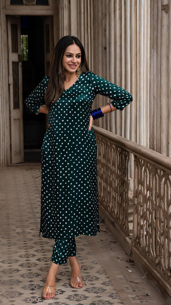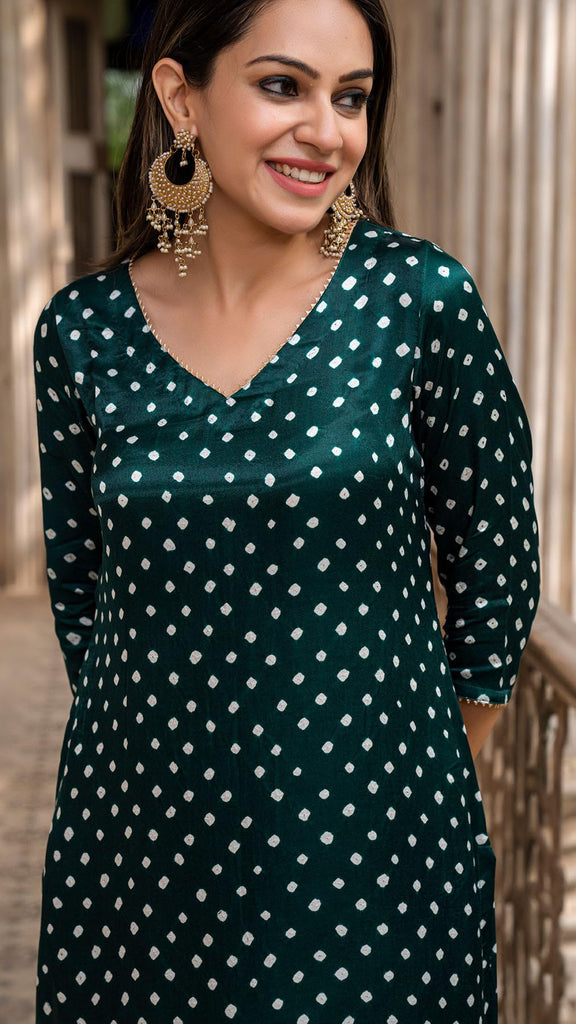 Anni Designer Women'S Rayon Blend Straight Bandhani Printed Kurta With Pant (Prantika Green_L_Green_Large)