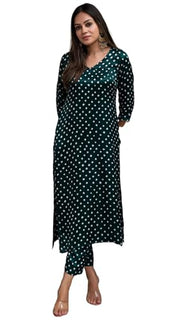 Anni Designer Women'S Rayon Blend Straight Bandhani Printed Kurta With Pant (Prantika Green_S_Green_Small),Green,S,,,