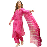 Anni Designer Women'S Rayon Blend Straight Bandhej Printed Kurta With Pant & Dupatta (Baghira Pink-Vks01_3Xl_Pink_Xxx-Large),Pink,3XL,Rayon Blend,Regular,