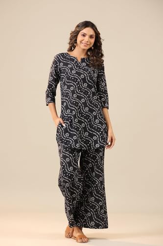 Anni Designer Women'S Rayon Blend Straight Bandhej Printed Kurta With Pant (Nesta Blue_S_Blue_Small),Blue,S,Rayon Blend,Regular,Kurta