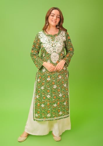 Anni Designer Women'S Rayon Blend Straight Chikankari Embroidered Kurta (Nakusha Green_M_Green_Medium),Green,M,Rayon Blend,Regular,