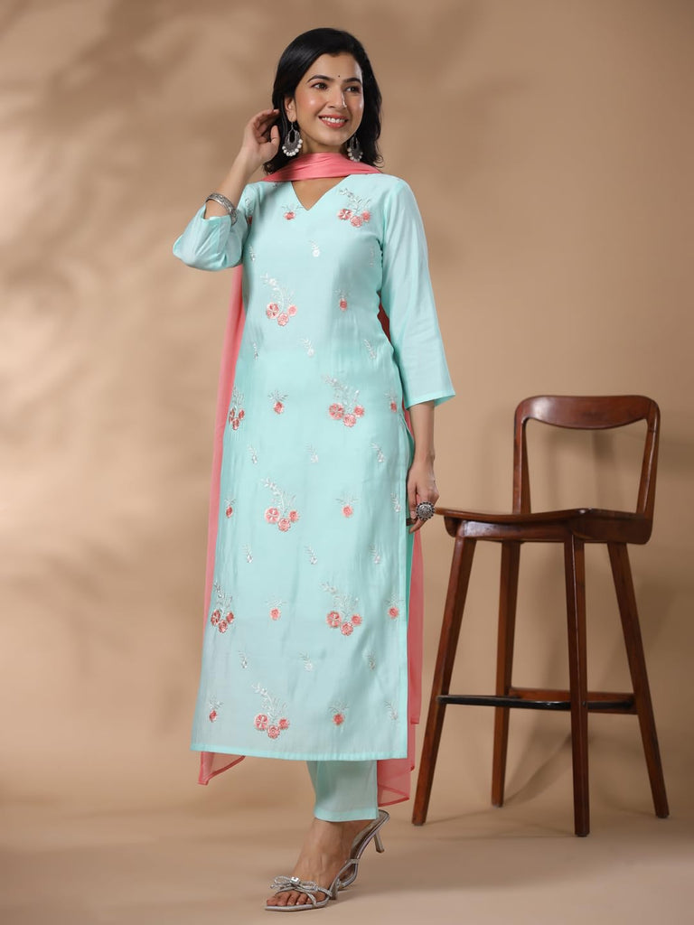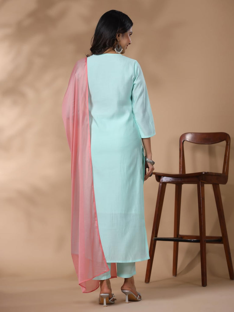 Anni Designer Women'S Rayon Blend Straight Embroidered Kurta With Pant & Dupatta (Baad Green-Vks04_L_Green_Large),Green,L,,,