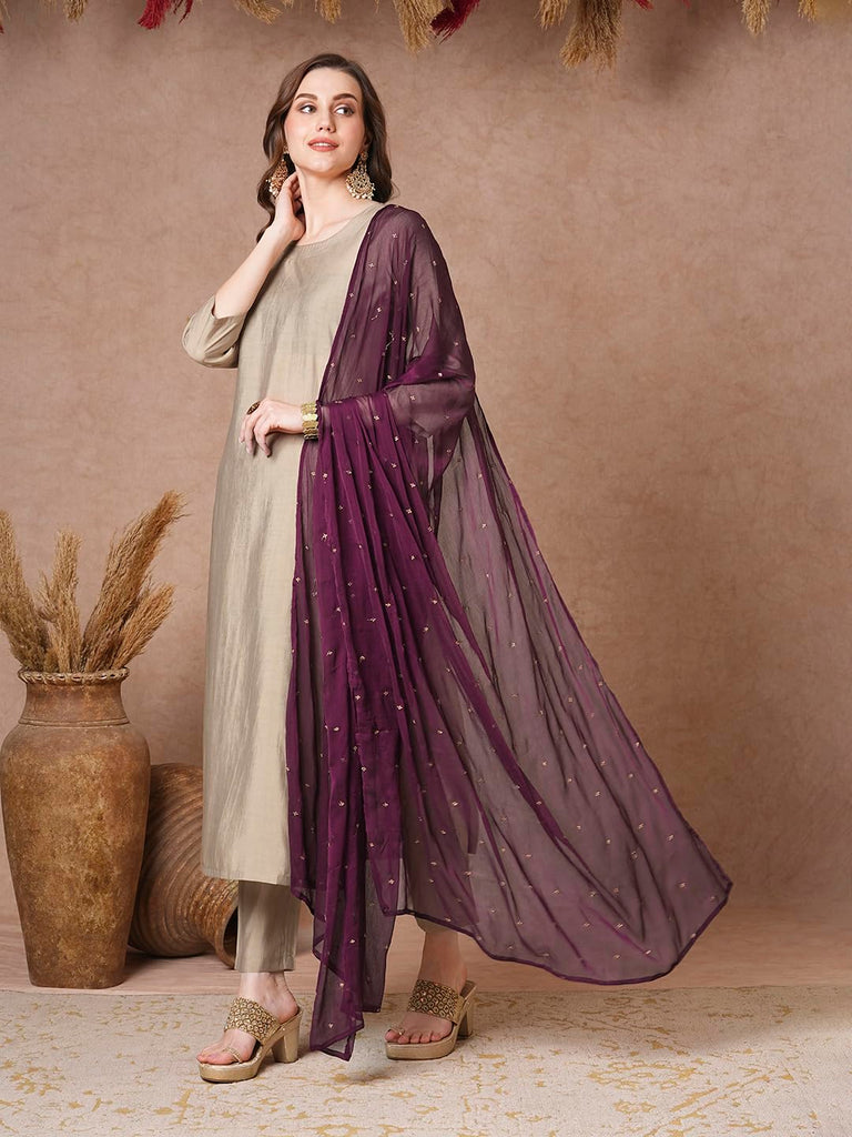 Anni Designer Women'S Rayon Blend Straight Embroidered Kurta With Pant & Dupatta (Bribiti Beige-Vks03_Xl_Beige_X-Large),BEIGE,XL,Rayon Blend,Classic,