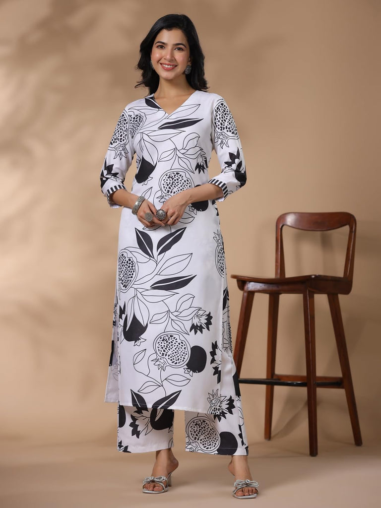 Anni Designer Women'S Rayon Blend Straight Printed Kurta With Palazzo (Anaar-White-Nws_Xl_White_X-Large)